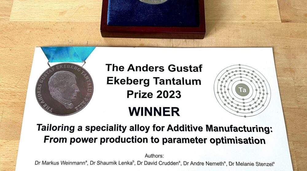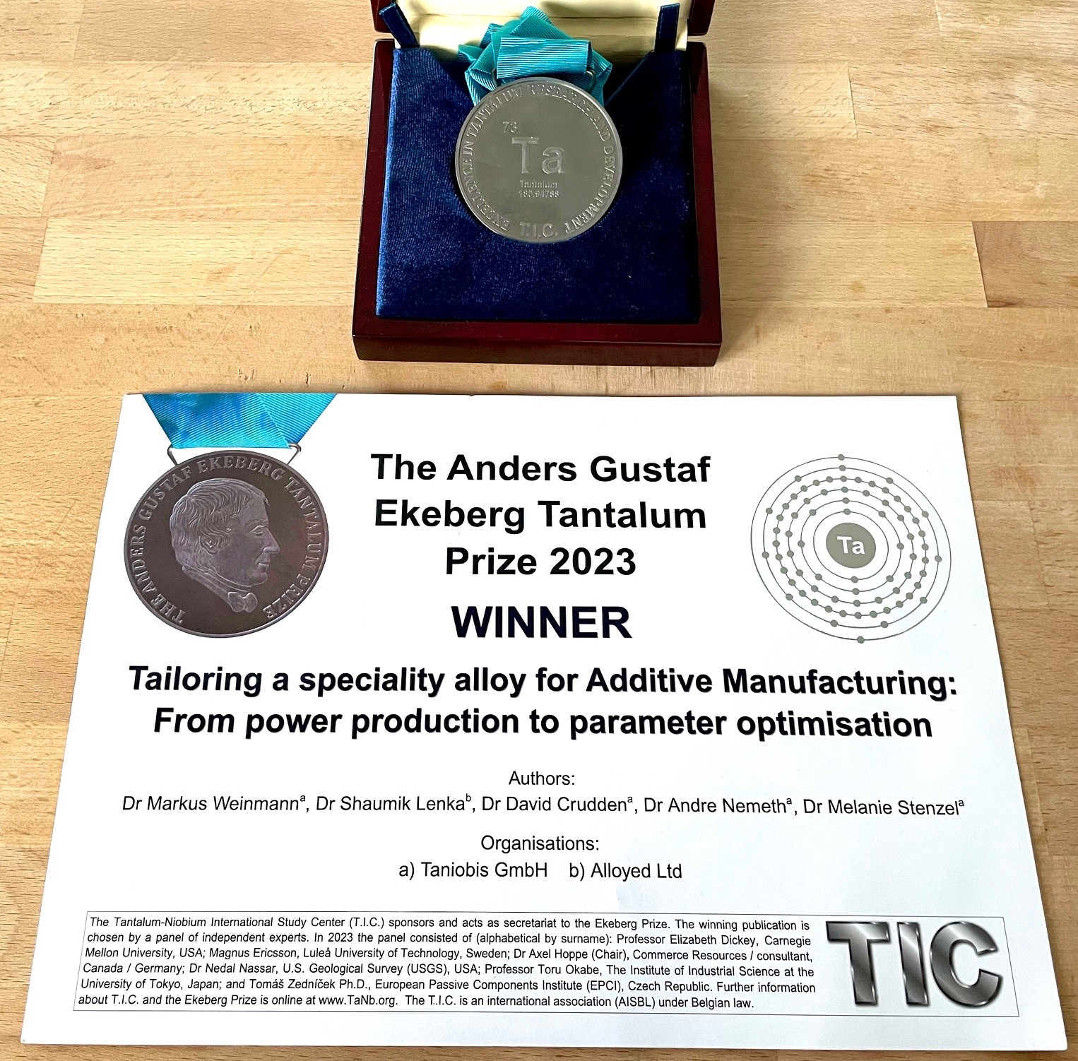 TANIOBIS GmbH and Alloyed Ltd. Receive Gustaf Ekeberg Prize